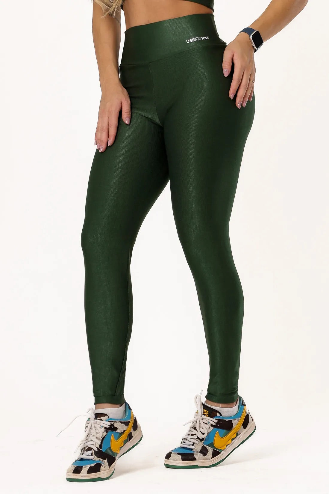 CALCA LEGGING CANELADA ALTA COMPRESSAO MODELADORA CINTURA ALTA - COR VERDE MILITAR
